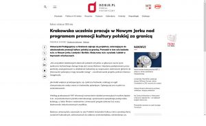 Dzieje.pl (19.10.2022). Krakowska uczelnia pracuje w Nowym Jorku nad programem promocji kultury polskiej za granicą